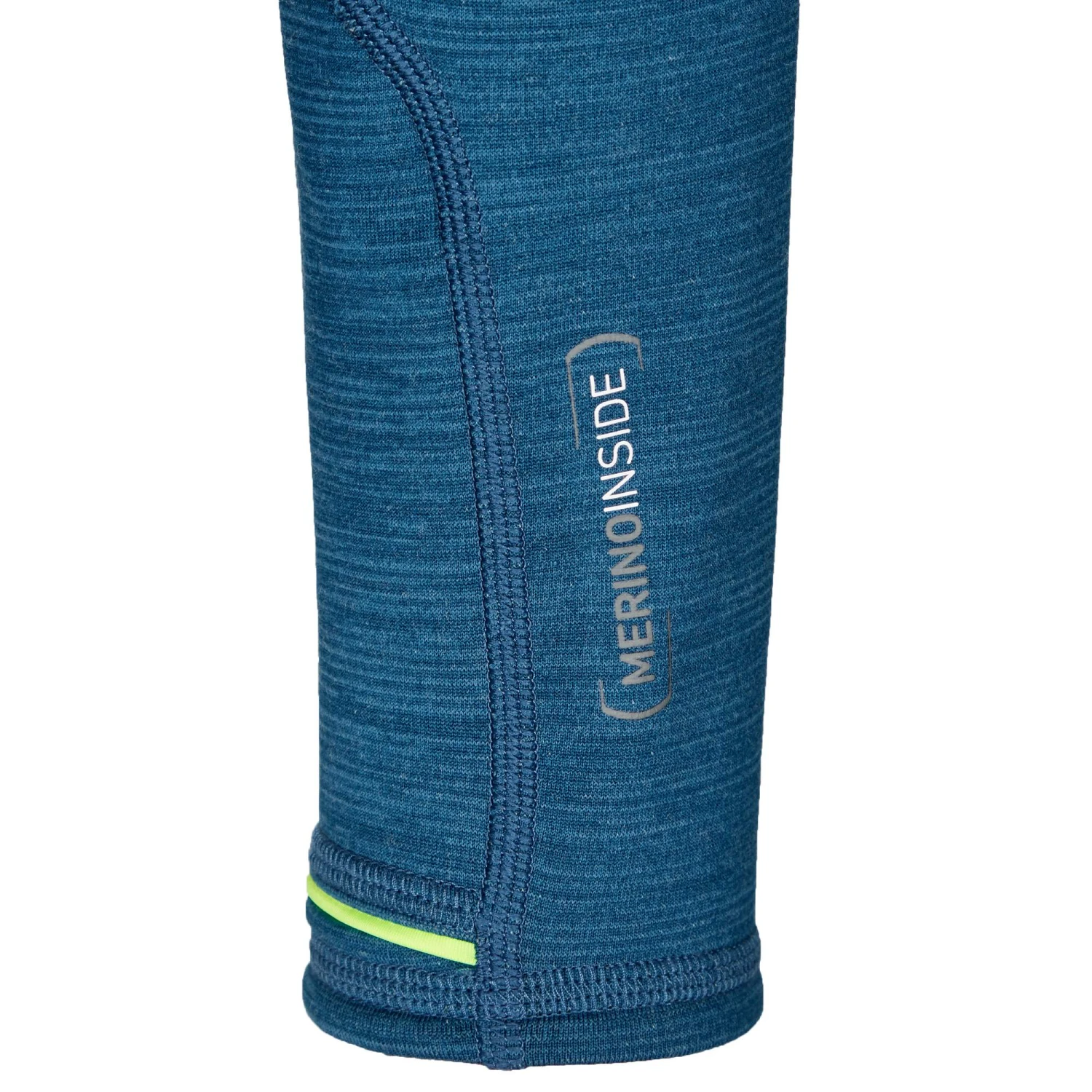 Die Außenseite ist glatt und recht robust, während die leichte Waffelstruktur an der Innenseite für ein gutes Wärme-Gewichtsverhältnis und ein ebenso gutes Feuchtigkeitsmanagement sorgt. Der Merinowoll-Anteil unterstützt den schnellen Abtransport von Körperfeuchtigkeit und steuert seine geruchshemmenden und temperaturregulierenden Eigenschaften bei. So trägt sich die Jacke auch auf langen, schweißtreibenden (Berg-) Touren sehr angenehm. Durch ihren Elasthan-Anteil ist die Jacke stark dehnbar und sorgt so für maximale Bewegungsfreiheit.